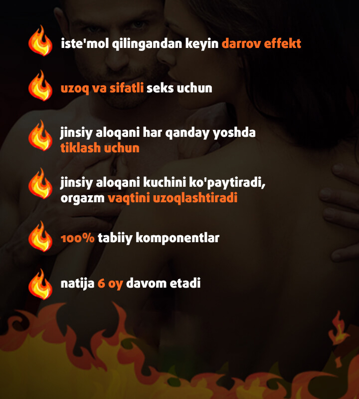 Endi olatingiz siz istagan vaqtda va istagan joyda toshdek turadi, seks 2-3 soat davom etadi. Maksimal natijaga