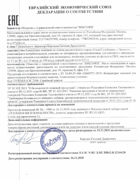 Восита таркибидан Перу макаси, қизил илдиз, Олтой буғуси шохи, йохимбе экстракти ва моннье жгун-илдизи ўрин олган. Бу 100% табиий маҳсулот бўлиб, ҳатто ёшингиз 55 дан ошган бўлса ҳам, эрекцияни 20 яшар йигитникидай қилиб қўяди.